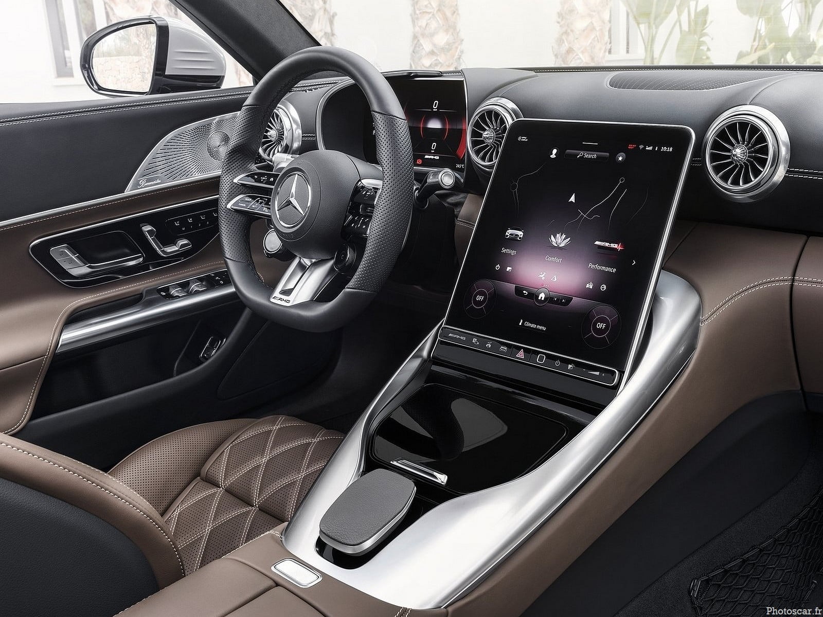 La Mercedes-AMG SL bénéficie de la technologie Mercedes-Benz User Expérience de dernière génération. Le poste de pilotage offre un écran tactile multimédia central réglable de 11,9 pouces (un peu comme celui de la dernière Mercedes Classe S ) et un tableau de bord numérique de 12,3 pouces. Les fonctionnalités intéressantes incluent la commande vocale et la vidéo augmentée pour la navigation. Site officiel Mercedes