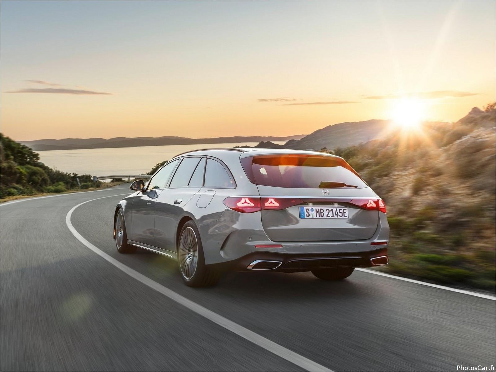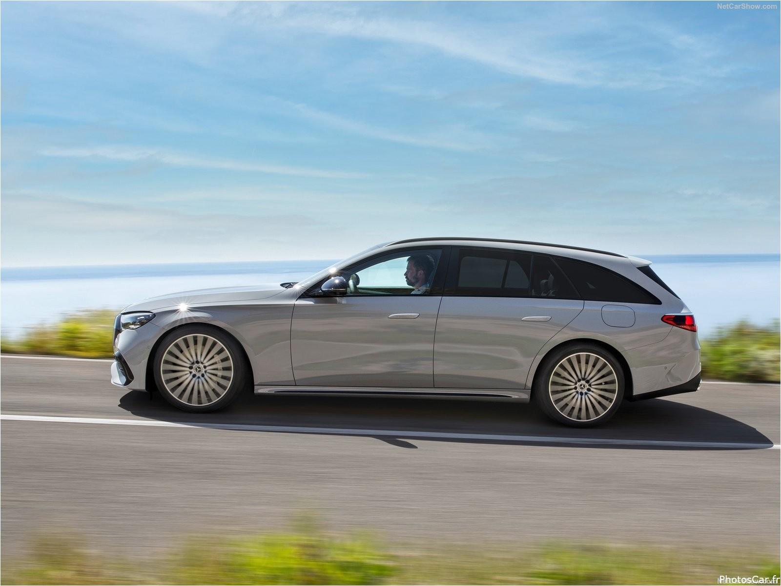 La nouvelle Classe E Estate a un look arrière super stylé et dynamique. Elle combine l’élégance et le côté pratique d’une façon vraiment cool. Le toit est plus arrondi, ce qui donne une meilleure aérodynamique par rapport à l’ancienne version. En plus, la vitre arrière est inclinée, ce qui lui donne un look plus sportif.