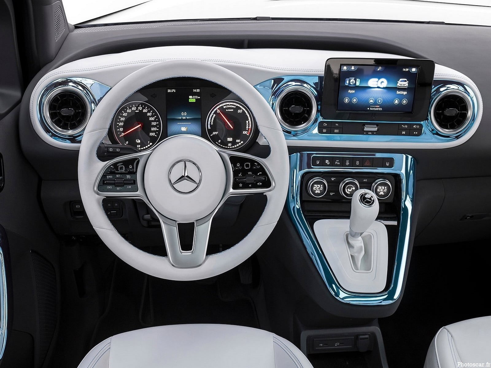 Avec le Concept EQT, Mercedes-Benz propose en avant-première un modèle qui arrivera d’ici la fin de l’année. Propulsé par des moteurs thermiques (Classe T) ou 100% électriques (EQT). «Le Concept EQT incarne la philosophie de style Sensual Purity de notre marque». Déclare Gorden Wagener, Chief Design Officer Daimler Group. «Des formes sensuelles, des finitions élégantes et des matériaux durables montrent que ce fourgon appartient clairement à notre famille de voitures électriques Mercedes-EQ.»