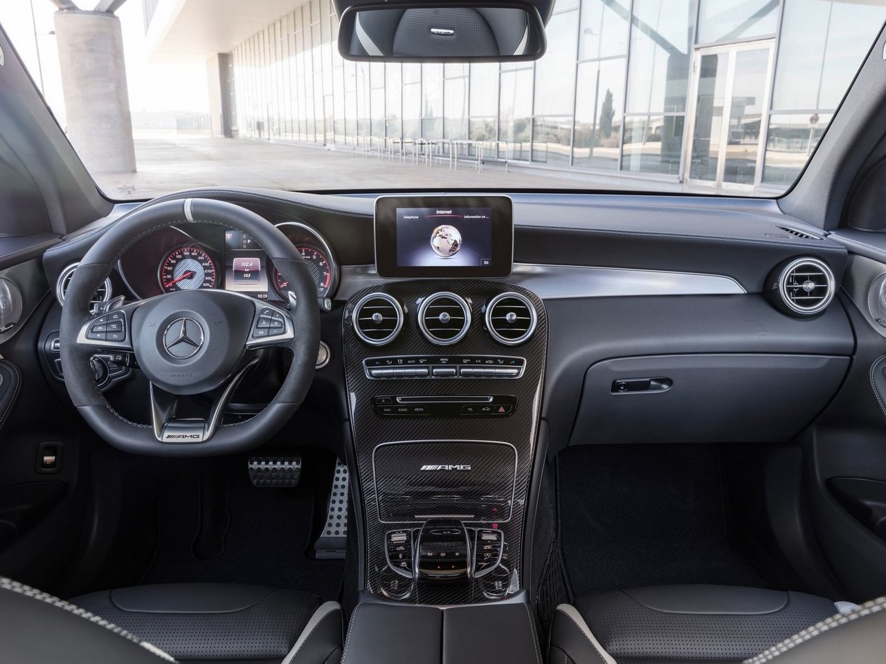 A l’intérieur, les modèles disposent d’une sellerie cuir synthétique avec inserts en microfibre dynamique. Le GLC 63 S Coupe dispose de panneaux de garniture intérieure en cuir. Egalement le volant Performance AMG est en cuir nappa dynamique microfibres, ainsi qu’un tableau de bord AMG avec fini rouge.