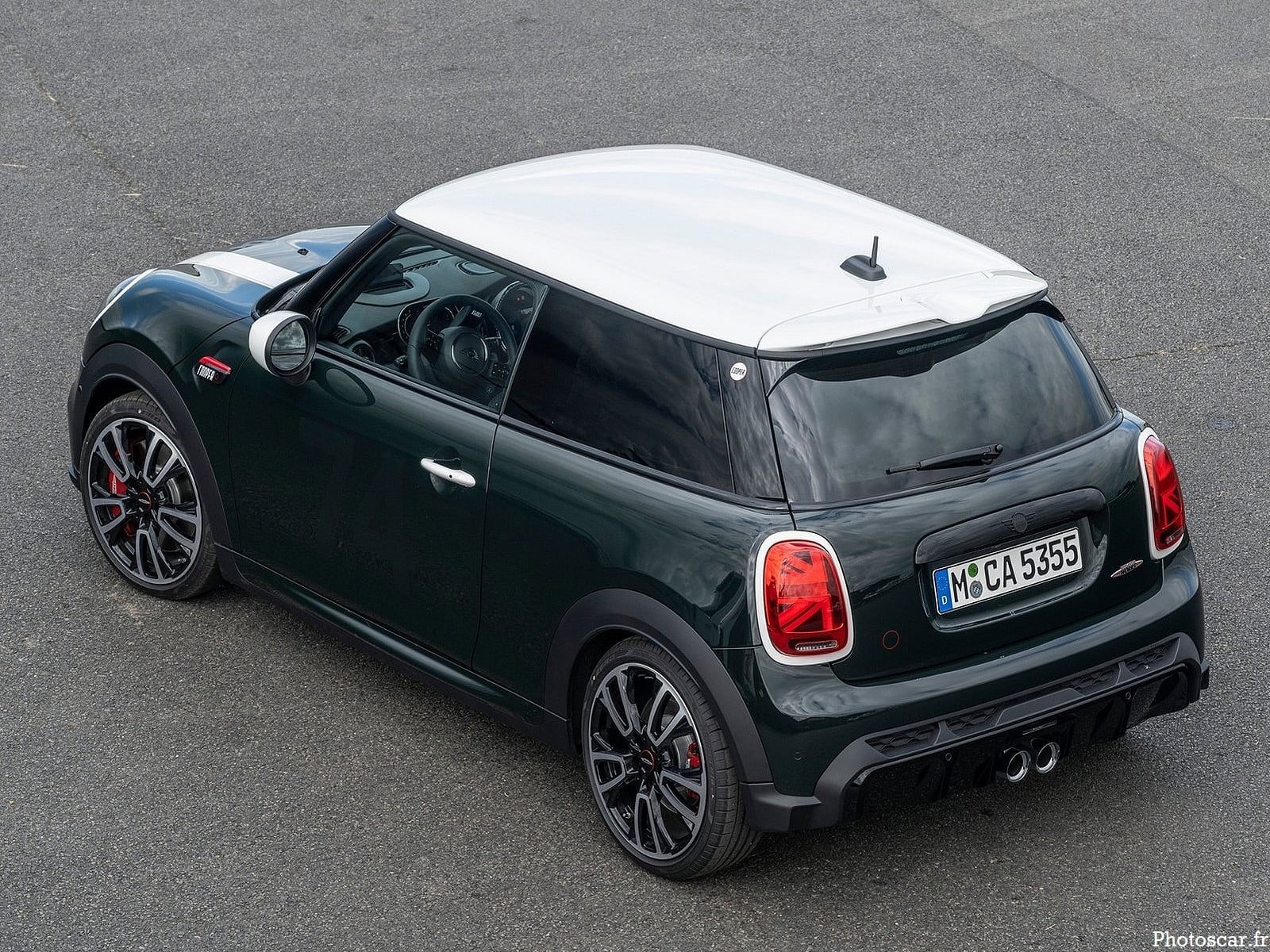 L’édition anniversaire – livrée avec un certain nombre de touches sur mesure, y compris la peinture Rebel Green ; un toit, des poignées de porte, des coques de rétroviseurs, des anneaux de phares finis en blanc ; et des rayures de capot blanches avec des lignes d’accent rouges. Il porte également le numéro 74 sur ses portes et son capot en clin d’œil à la Mini Cooper remportant sa première victoire de classe au Trophée Lombank 1961 à Snetterton.