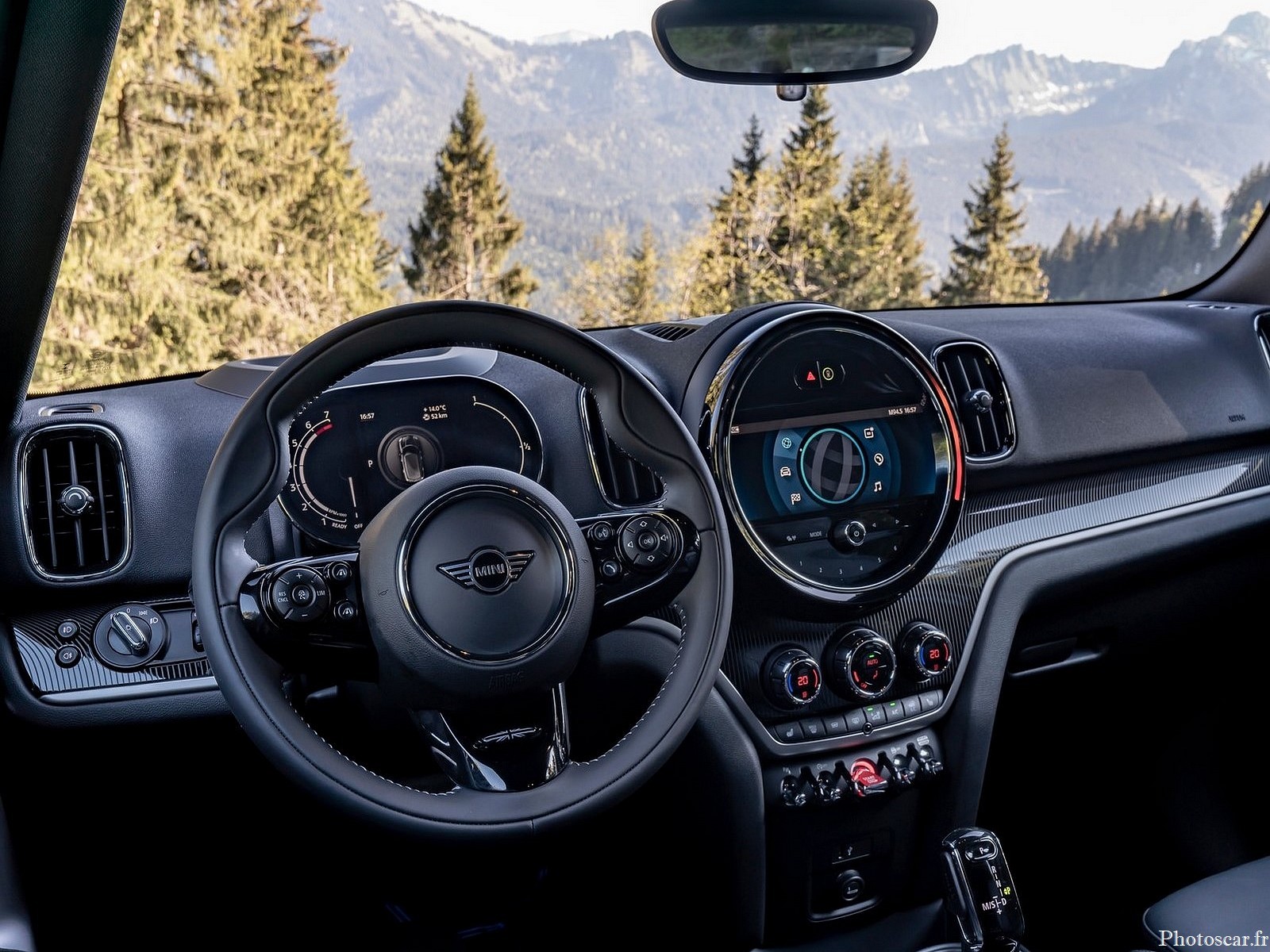 L’unité de commande circulaire du nouveau MINI Countryman présente un aspect de surface raffiné! avec le panneau de commande audio! les boutons des feux de détresse! des systèmes d’aide à la conduite désormais intégrés de manière encore plus harmonieuse. Pendant ce temps, les boutons de signet tactiles et les surfaces brillantes Piano Black soulignent le caractère premium de l’instrument central.