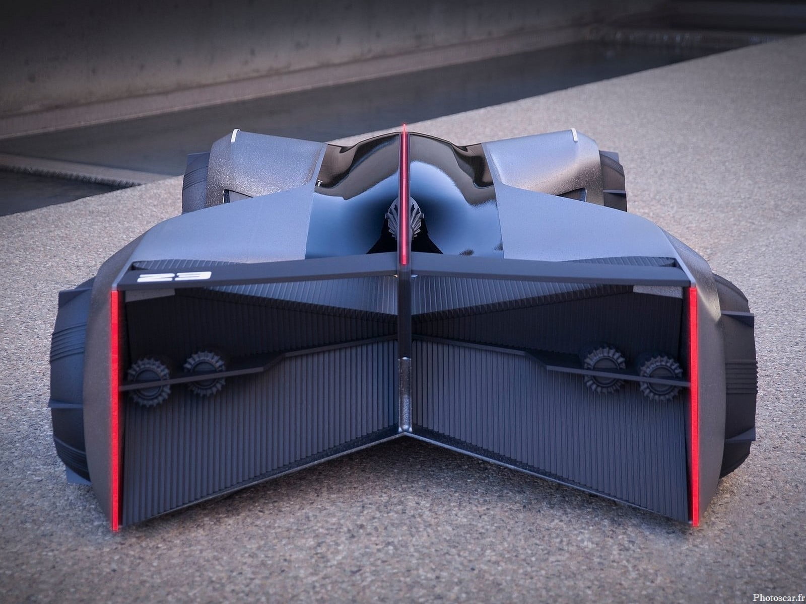 Le concept ne mesure que 2908 mm de long, 1537 mm de large et 658 mm de haut avec un empattement de 1756 mm. Ce qui signifie que le seul occupant montera à bord du véhicule horizontalement en position couchée! avec tous les membres étendus en forme de « X ». Ici, l’occupant est_représenté portant une combinaison moulante et un casque, semblable à la tenue de protection d’un motocycliste.
