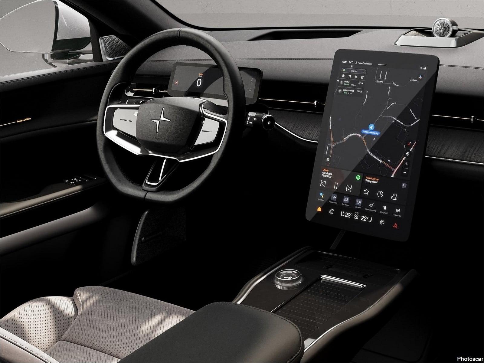 Un écran d’infodivertissement de 14,5 pouces domine l’habitacle épuré mais élégant et exécute un système d’exploitation Android Automotive , lié à la configuration vue sur la Polestar 2. Les applications Google Assistant, Google Maps et Google Play Store intégrées. L’intérieur aussi dispose de capteurs radar capables de détecter des mouvements inférieurs au millimètre. Conçus pour vous aider à éviter de laisser des enfants ou des animaux de compagnie distraitement derrière vous! et Polestar indique que le système se connecte également à la climatisation pour aider à prévenir les coups de chaleur ou l’hypothermie. Un eye-tracker avertira les conducteurs distraits ou somnolents avant d’activer une procédure d’arrêt d’urgence s’ils sont ignorés à plusieurs reprises. Site officiel Polestar