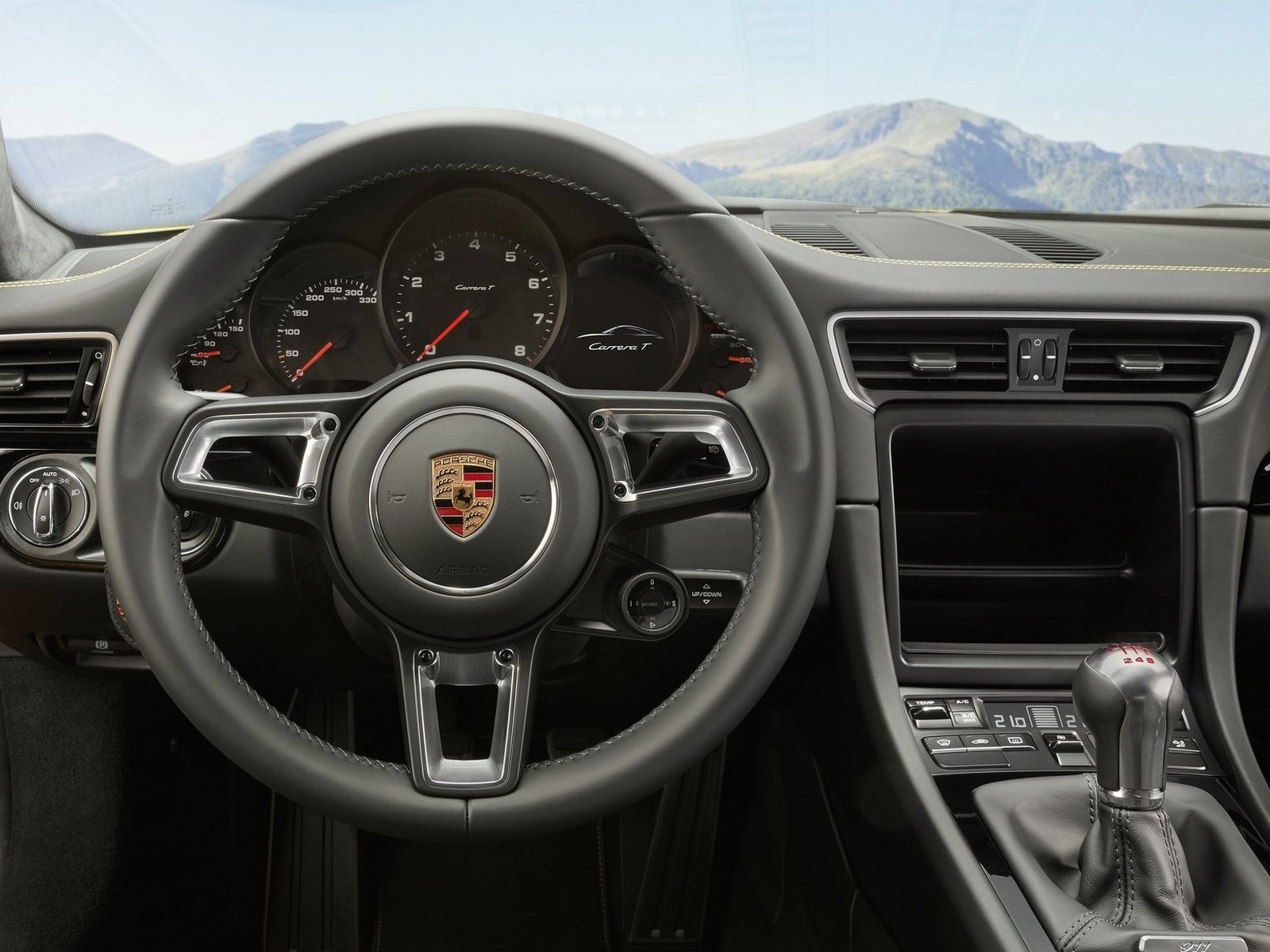 L’intérieur de la Carrera T est allégé par rapport à celui de la 911 Carrera de base. Les sièges arrière sont supprimés, ainsi que le système d’info-divertissement. Ces éléments sont toutefois disponibles en option gratuite. Les matériaux utilisés dans l’intérieur sont de haute qualité. Le cuir et l’aluminium sont omniprésents. L’assemblage est également impeccable.