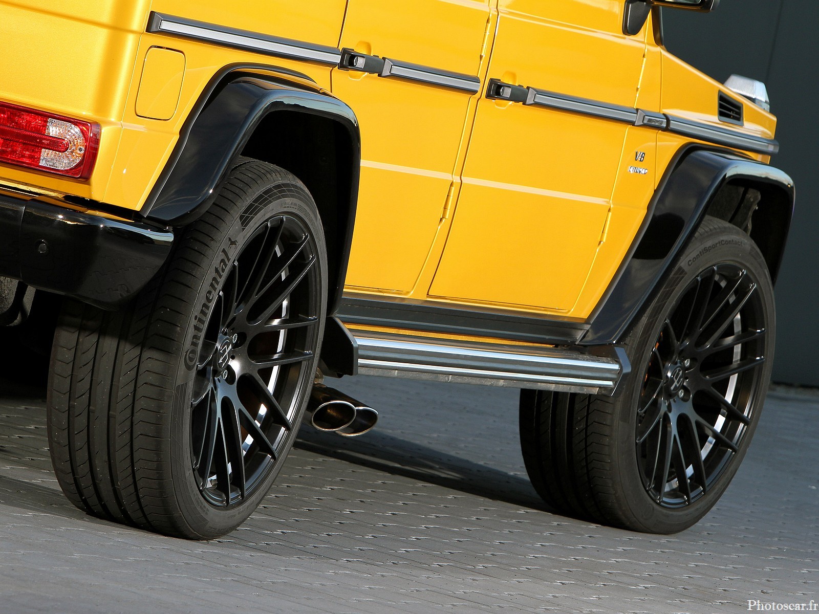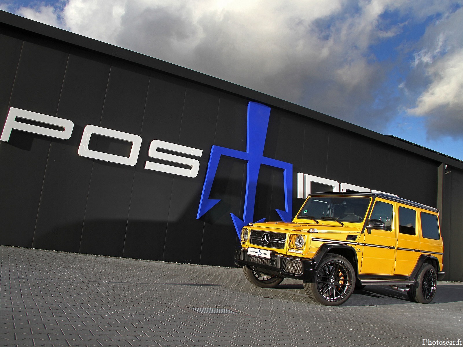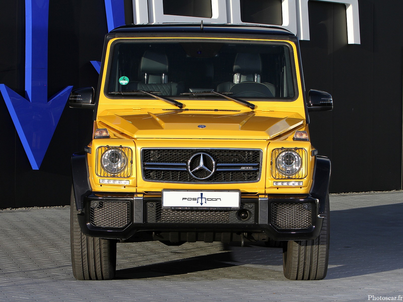 Pour que la balle de gros calibre ne saute pas de piste même à des vitesses supérieures à 250 km/h! Posaidon équipe le châssis de la Mercedes-AMG G63 d’un système d’amortissement adaptatif réglable en trois étapes! ce qui rend la combinaison roue / pneu énorme. Des jantes de 22 pouces et des pneus hautes performances de taille 285 / 40R22 comme du chewing-gum sur les pistes. En termes de couleur, le G-Monster jaune (peinture spéciale AMG « Sunbeam ») est bien sûr un véritable accroche-regard en mode parc. Les jantes noires en alliage léger à rayons en Y forment un fort contraste! derrière lequel les étriers dorés du système de freinage XXL scintillent presque hors de vue.
