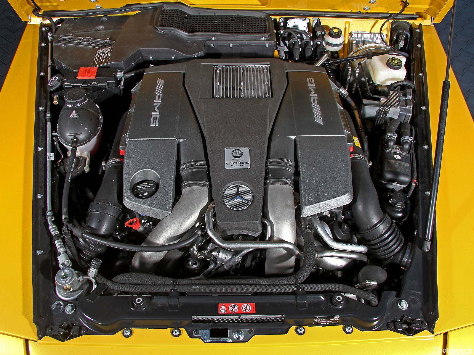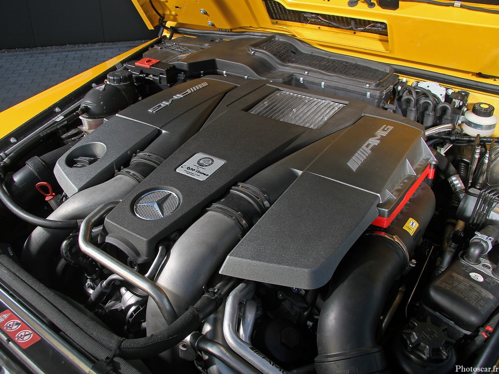 Ce petit miracle est_rendu possible par un niveau de performance du moteur M157 porté à 850 ch! (limité électroniquement) à 1350 Newton mètres! sur lequel, en plus des turbocompresseurs de mise à niveau internes! des modifications ont également été_apportées au refroidissement de l’air de suralimentation et à l’admission du V8. La transformation en «G RS 850» a_été achevée par l’installation d’un système d’échappement sport en acier inoxydable avec commande des volets! qui comprend également des convertisseurs catalytiques pour le sport automobile, et une optimisation individuelle du logiciel du moteur.