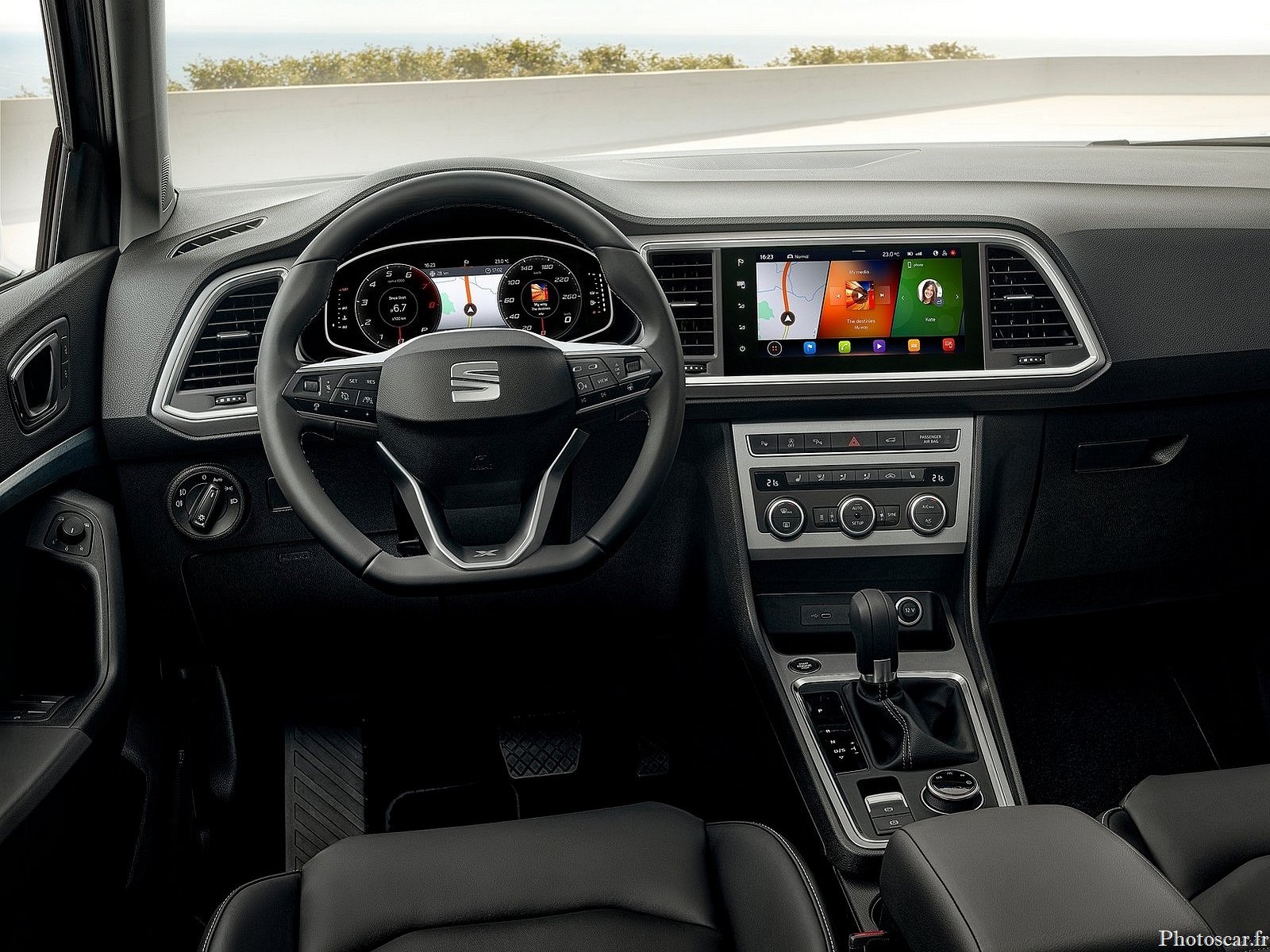 Au centre se trouve le cockpit numérique de SEAT. Il réunit un habitacle de pilote numérique haute résolution entièrement couleur de 10,25 pouces entièrement personnalisable et un grand système d’infodivertissement. Le système d’infodivertissement standard dispose d’un écran de 8,25 pouces avec la compatibilité audio du smartphone! tandis que le plus grand système de connexion de 9,2 pouces (de série sur la technologie SE) offre une navigation en ligne. Mais aussi une commande vocale naturelle pour simplifier l’interaction de l’utilisateur.