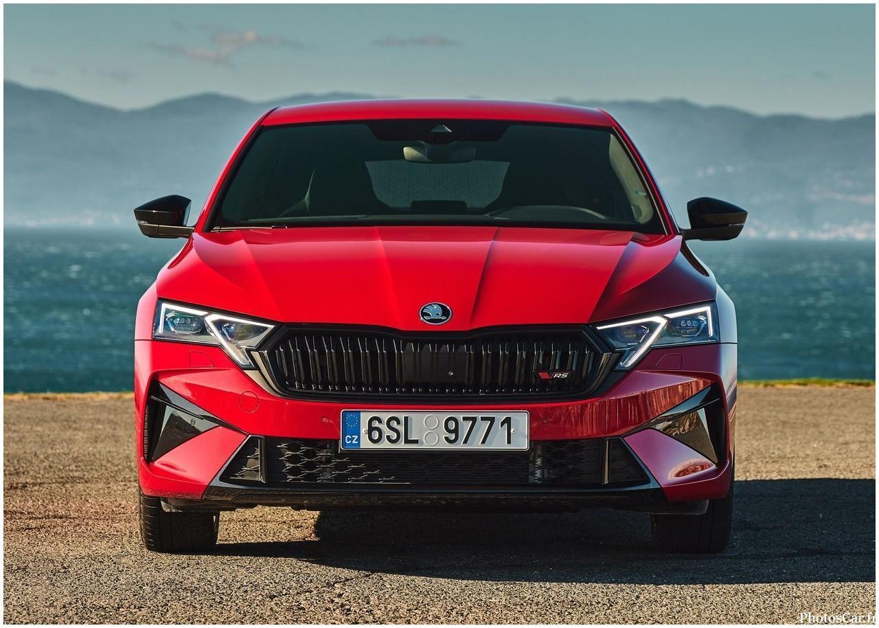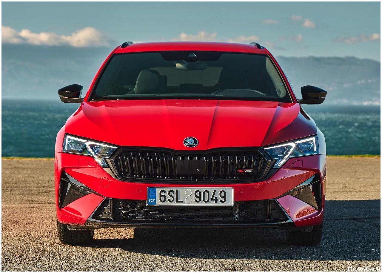Le design extérieur de la Skoda Octavia RS 2025 est à la fois racé et élégant . La face avant montre une calandre noire brillante . Elle possède des phares Matrix LED . Un pare-chocs agressif renforce son look sportif .