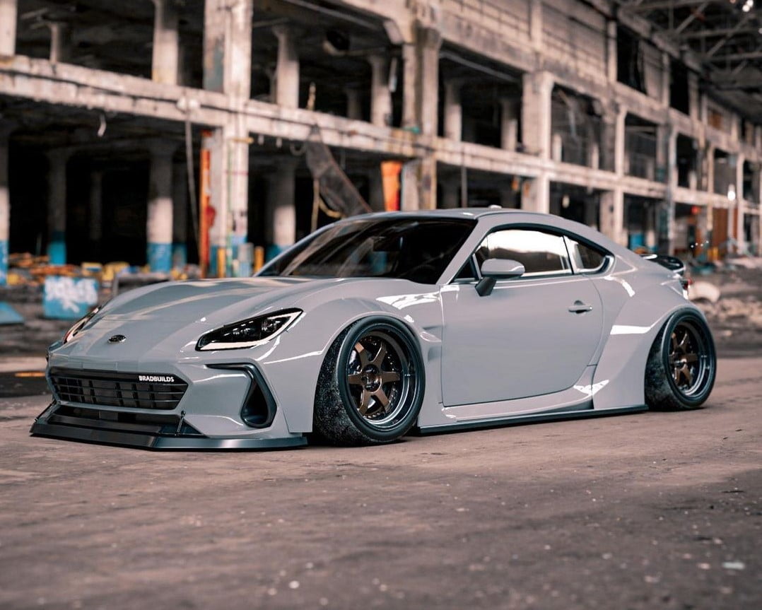 La Subaru BRZ BradBuilds 2022 passe à la carrosserie large avec des roues à rayons.