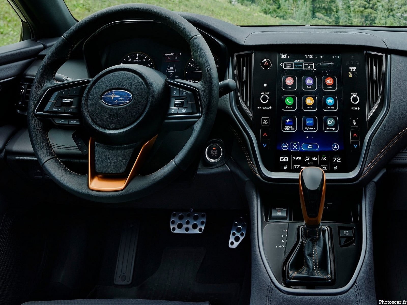 À l’intérieur, il y a plus de badges Wilderness sur les sièges et les tapis de sol toutes saisons! ainsi que des accents et des coutures en cuivre pour correspondre à ceux trouvés à l’extérieur. Les sièges – recouverts d’un matériau hydrofuge pour un nettoyage plus facile! et les dossiers des sièges arrière et le plancher de chargement – dotés de matériaux imperméables. En dehors de cela, l’intérieur est le même que celui d’un Outback normal. Le plus grand écran de 11,6 pouces orienté verticalement est_livré en standard.