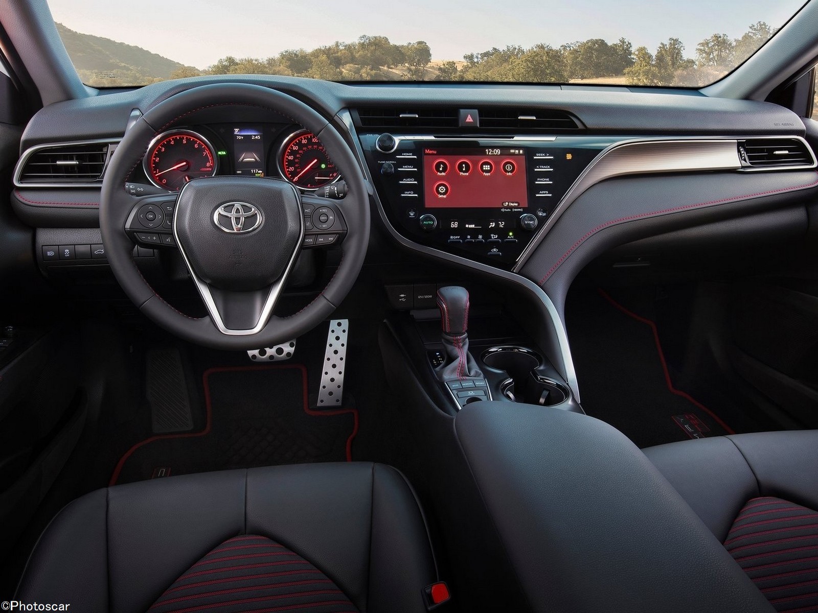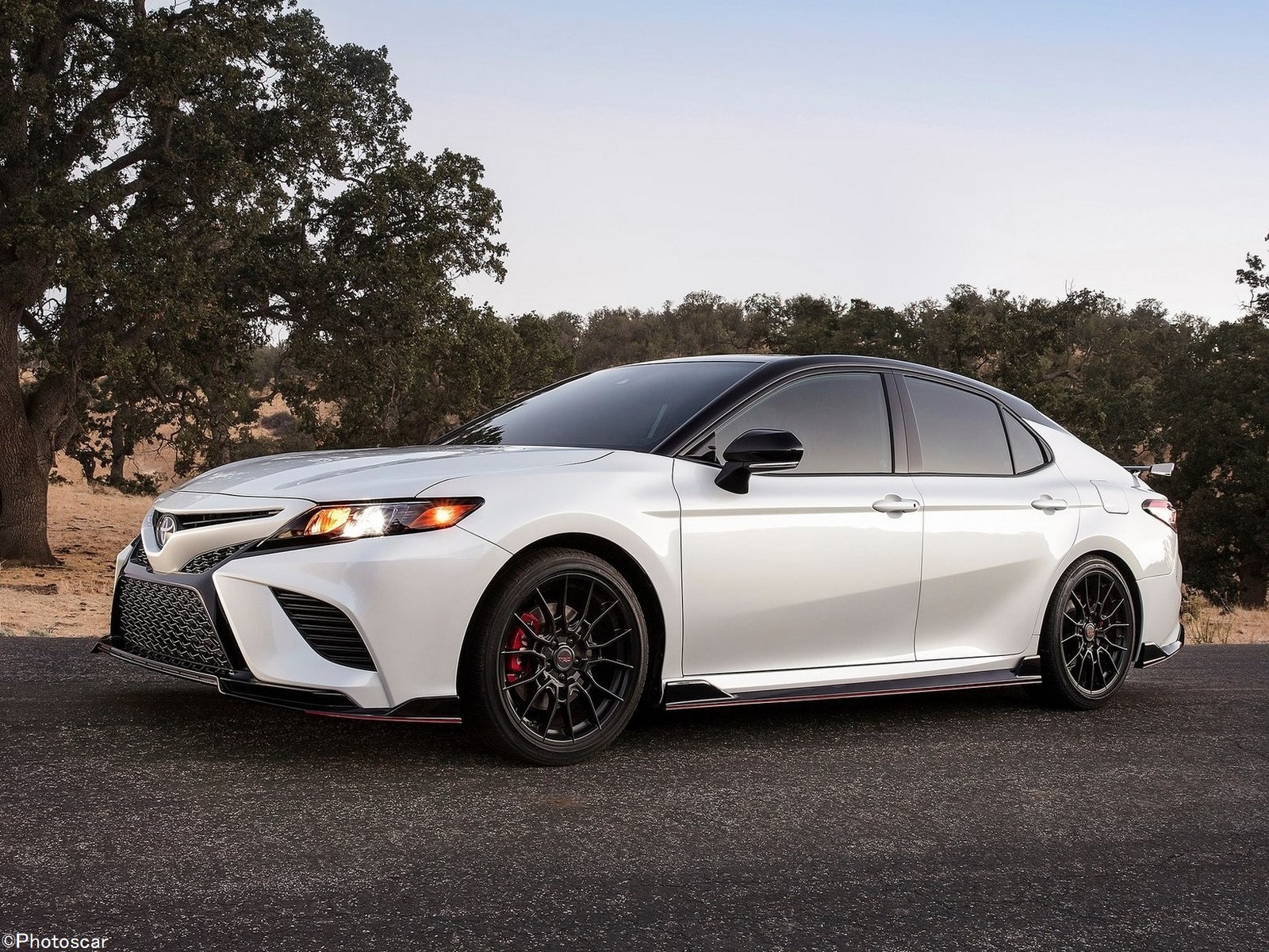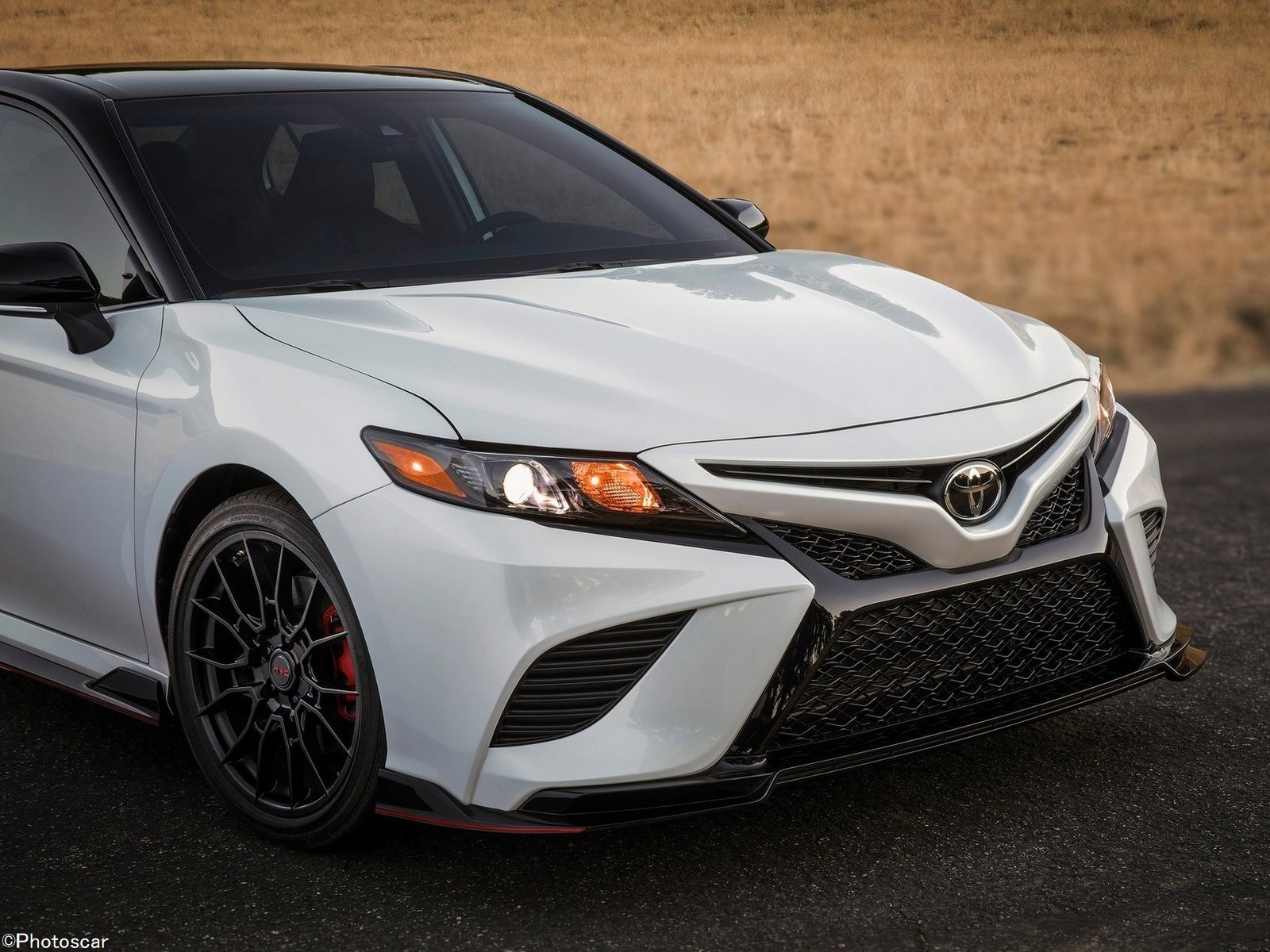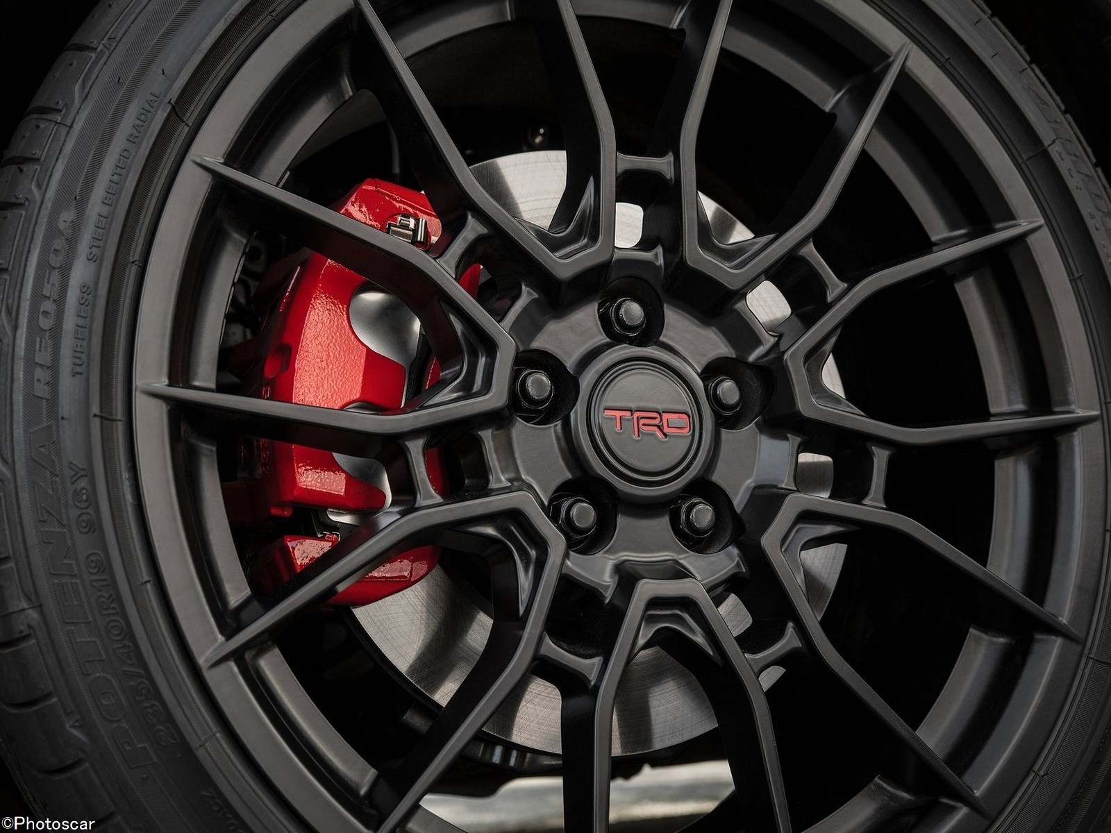 La Camry TRD reçoit également un nouveau jeu de roues; portant des alliages noirs mats de 19 pouces qui pèsent chacun 3,1 kilos de moins que les roues de la garniture XSE. Les pneus d’été Bridgestone Potenza (235 / 40R19) sont également de série. La combinaison deux tons que vous voyez ici est standard; que vous choisissiez la voiture en rouge, blanc ou argent, les trois seules couleurs proposées.