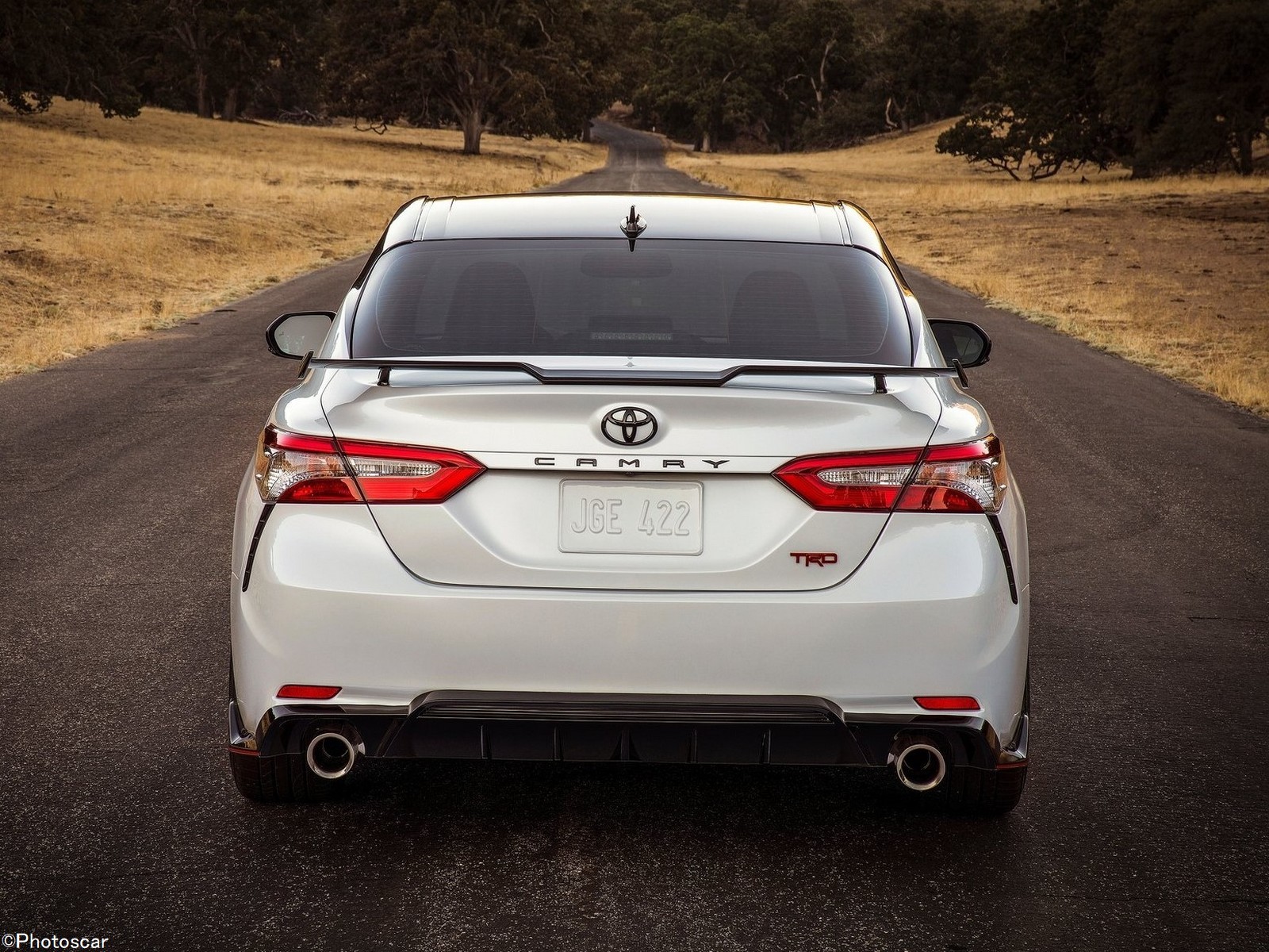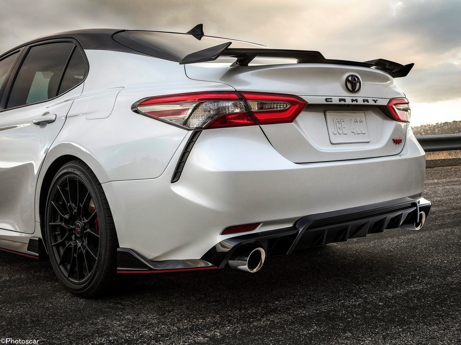 Il est difficile de regarder la Camry TRD et de ne pas être immédiatement attiré par l’arrière. À l’arrière, il y a l’une des ailes les plus folles au monde pour une Toyota. Un nouveau kit de carrosserie ajoute un séparateur avant, des jupes latérales et un diffuseur arrière plus agressifs; qui sont tous supposés être_bénéfiques pour la stabilité à grande vitesse. La calandre unique et ne se retrouve sur aucune autre garniture. Des fines rayures rouges, des étriers de frein et des écussons complètent l’extérieur.