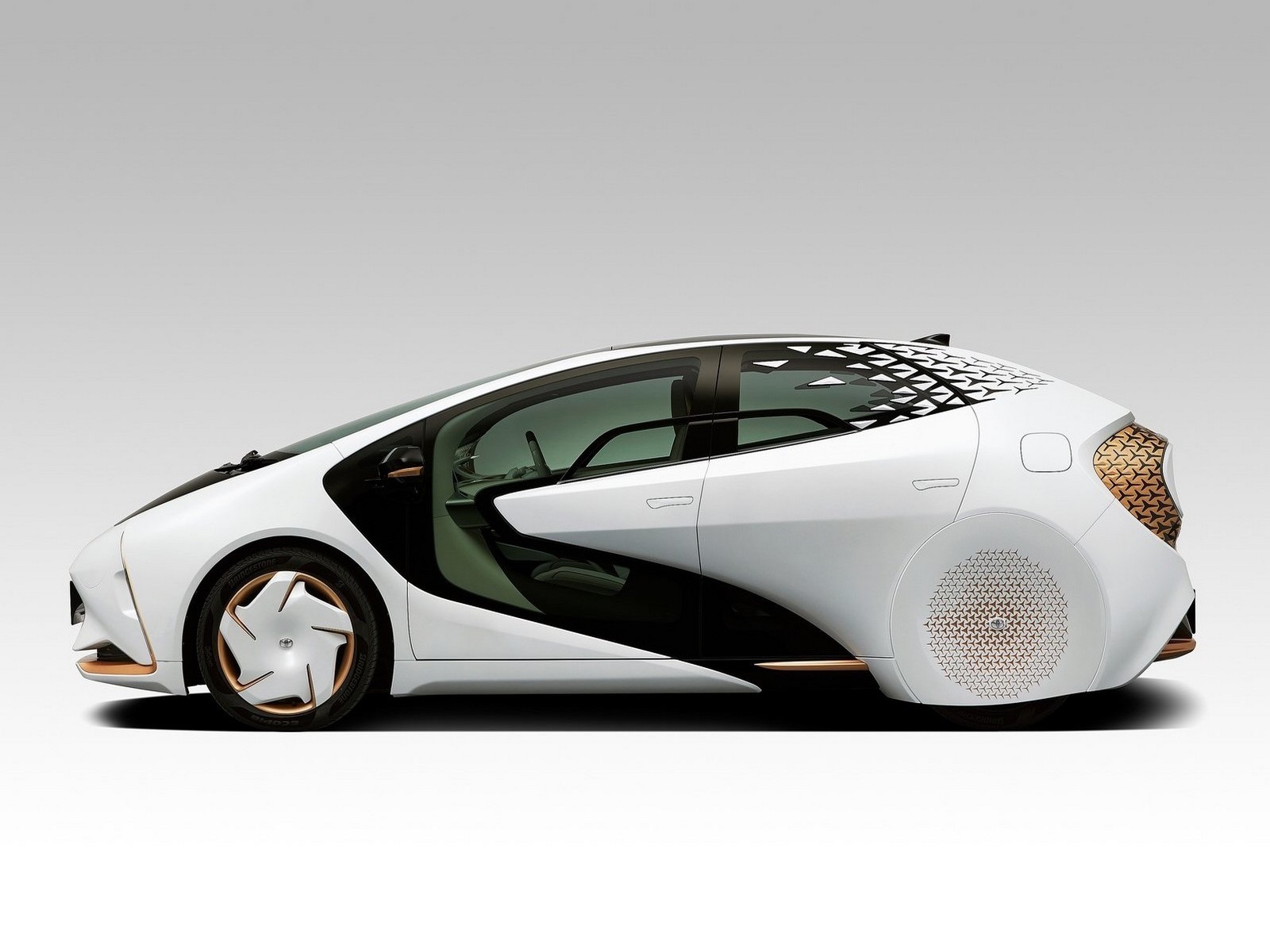 Le style du concept est futuriste; roue arrière couverte, glace du sol au plafond et phares minces en diagonale. Tandis que le style du pare-chocs avant inférieur ressemble fortement aux véhicules de série Prius et Mirai de Toyota.