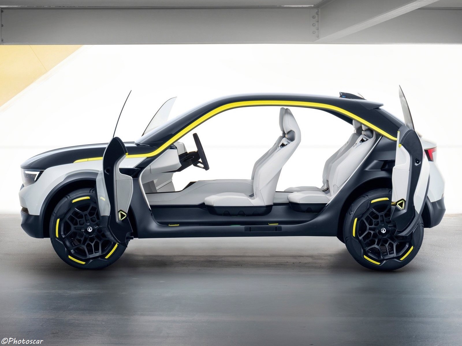 Les portes à charnières de style suicidaire s’ouvrent pour laisser toute la cabine exposée et le concept ne comporte aucun pilier B conventionnel. Quatre sièges individuels se trouvent à l’intérieur.