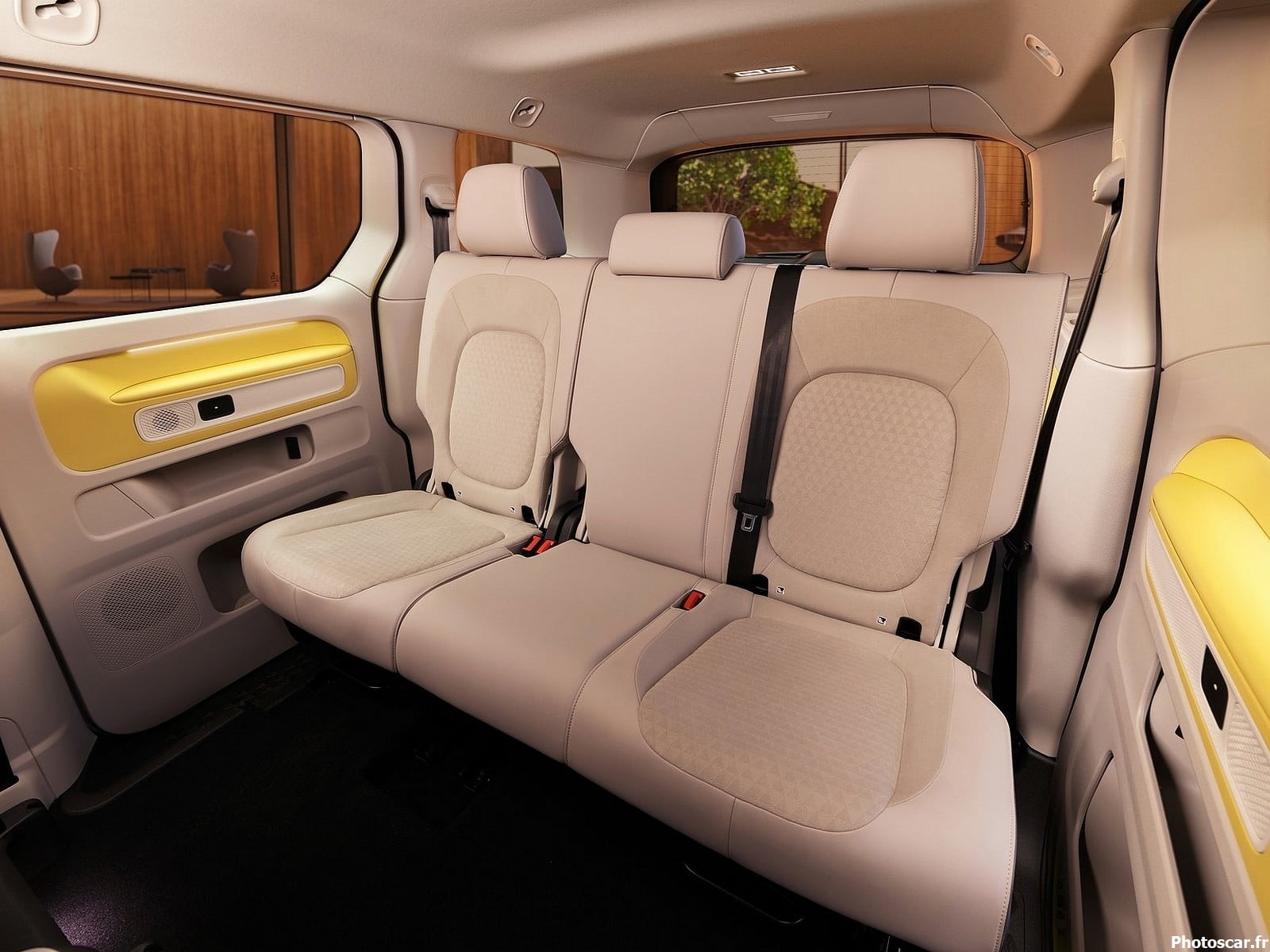 Cela signifie qu’il n’y a pas de cuir à l’intérieur de l’ID Buzz 2023. Le polyuréthane sert à fabriquer certaines pièces, comme la jante du volant.Ce matériau imite l’apparence et la sensation du cuir. La sellerie des sièges est fabriquée à partir de matériaux issus de produits recyclés. Les revêtements de sol et la garniture de toit sont également fabriqués avec ces matériaux.