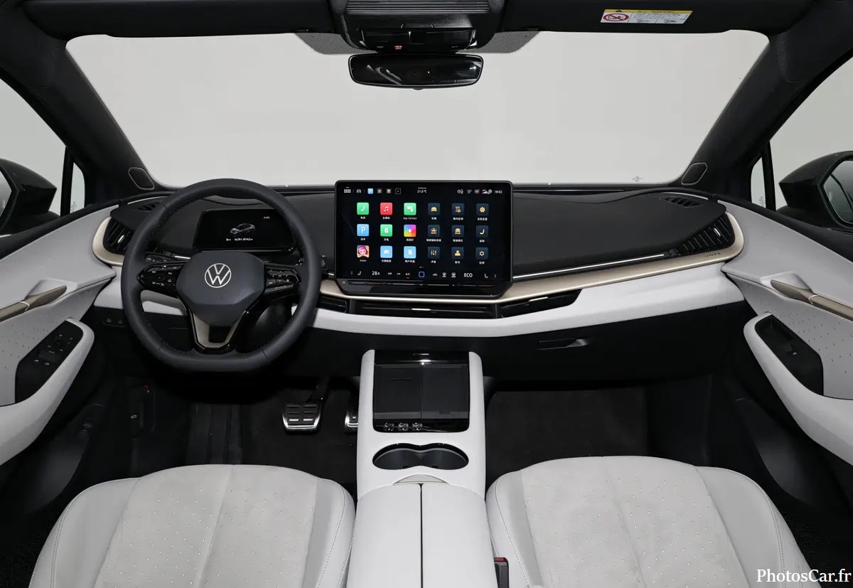 À l’intérieur, la Volkswagen ID.UNYX 07 joue la carte du minimalisme intelligent. L’habitacle est épuré, lumineux, et truffé de technologies. L’écran central tactile, le combiné numérique et les commandes vocales offrent une expérience connectée. Les matériaux sont soignés, avec des textiles recyclés et des plastiques doux au toucher. L’espace à bord est généreux, surtout à l’arrière grâce à l’empattement allongé. Les sièges sont confortables, les rangements nombreux, et l’ambiance zen. Volkswagen veut créer un cocon mobile, où chaque trajet devient un moment agréable. Le système d’infodivertissement est compatible avec les services chinois, preuve que la marque s’adapte localement. C’est un intérieur pensé pour les usages modernes.