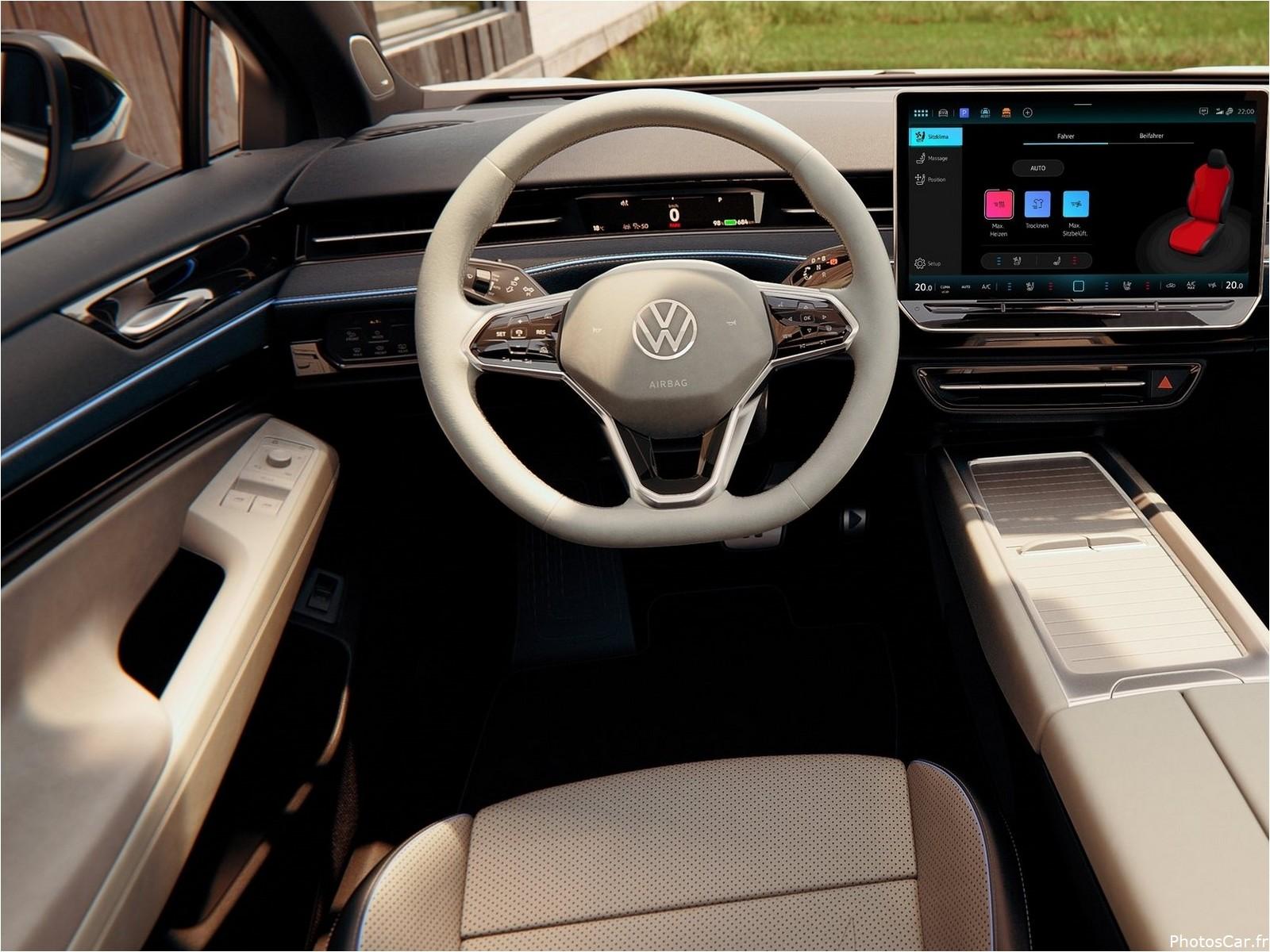 Avec de nouveaux sièges de massage et un toit ouvrant panoramique à commande électronique ! l’ID.7 dispose d’options d’équipement que l’on ne trouve généralement que dans les modèles haut de gamme des concurrents. Le nouveau toit ouvrant panoramique en verre intelligent peut se commuté entre les réglages opaques et transparents d’une simple pression. Comme de nombreuses autres fonctions de l’ID7 ! le toit ouvrant peut également se contrôlé par des commandes vocales naturelles à l’aide du nouvel assistant vocal IDA. Les sièges avant en option sont également une nouveauté ! pour la première fois dans une Volkswagen, ils offrent le Climatronic adaptatif option de siège ! avec refroidissement ou chauffage selon les besoins et également une fonction de séchage. Une fonction de massage avec l’approbation de la campagne allemande pour un dos plus sain (AGR) est également disponible.