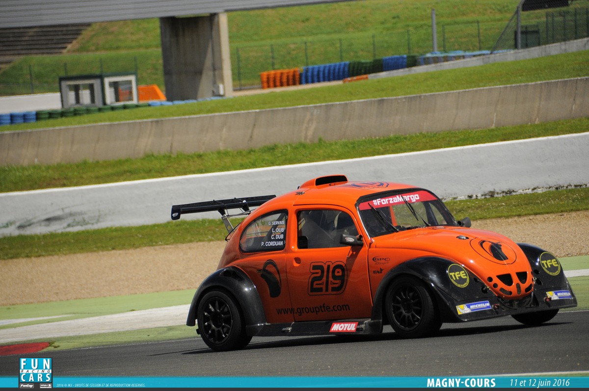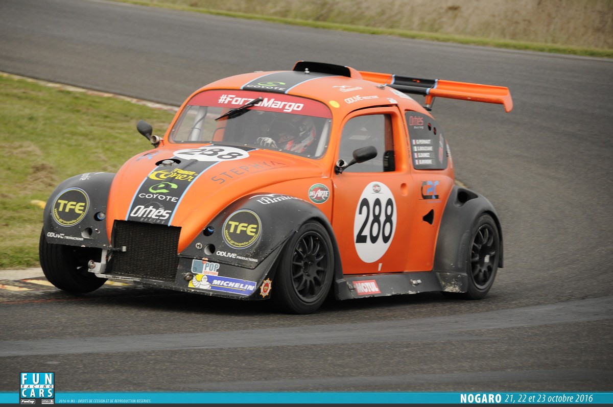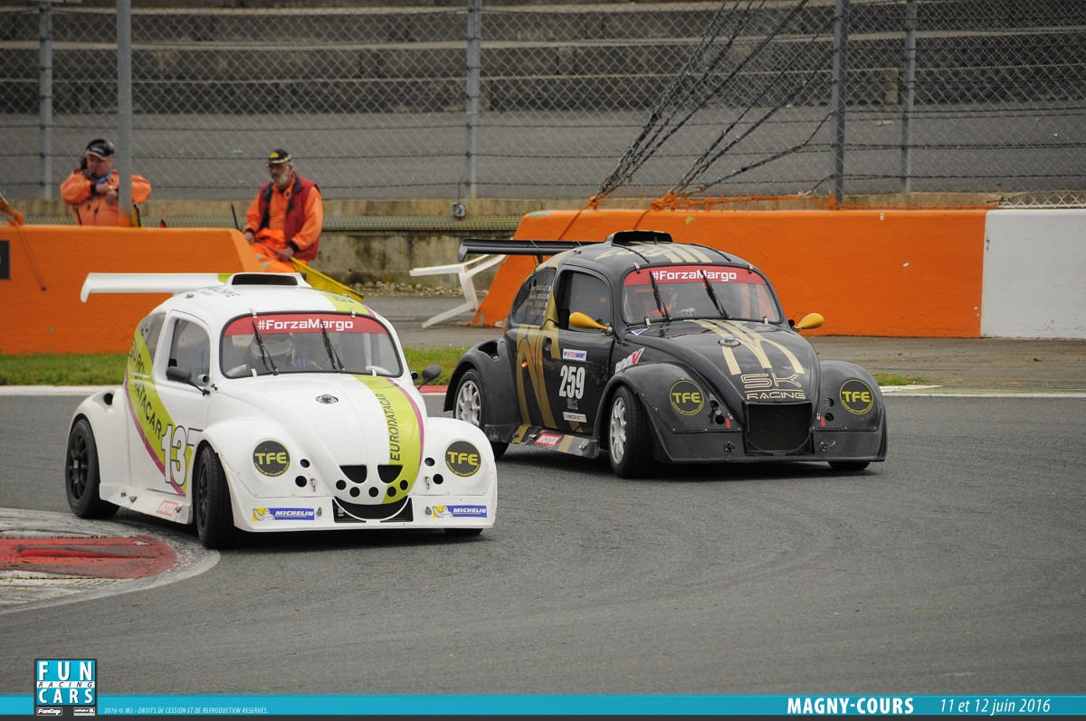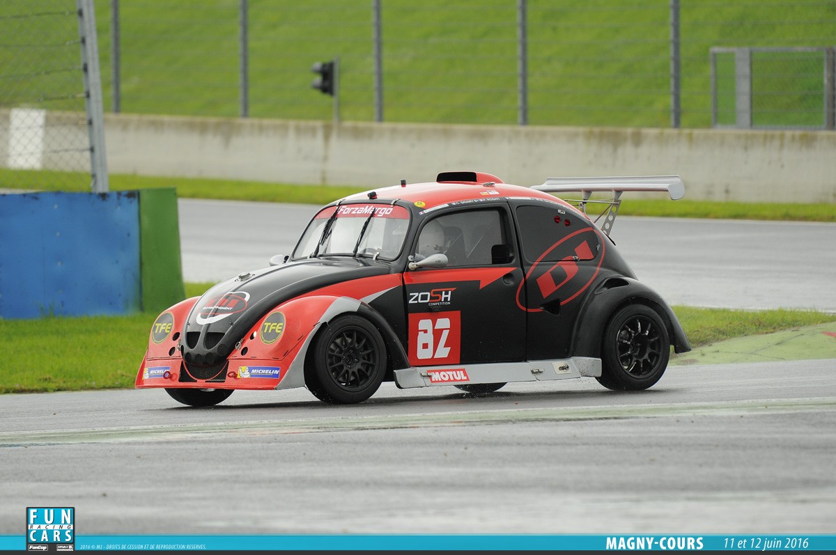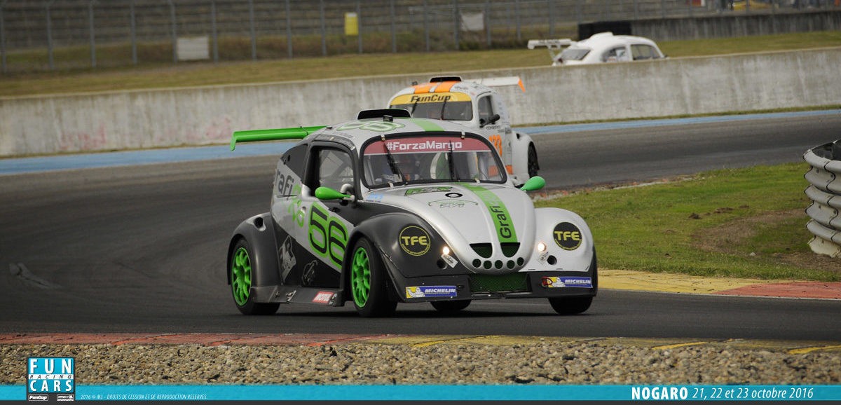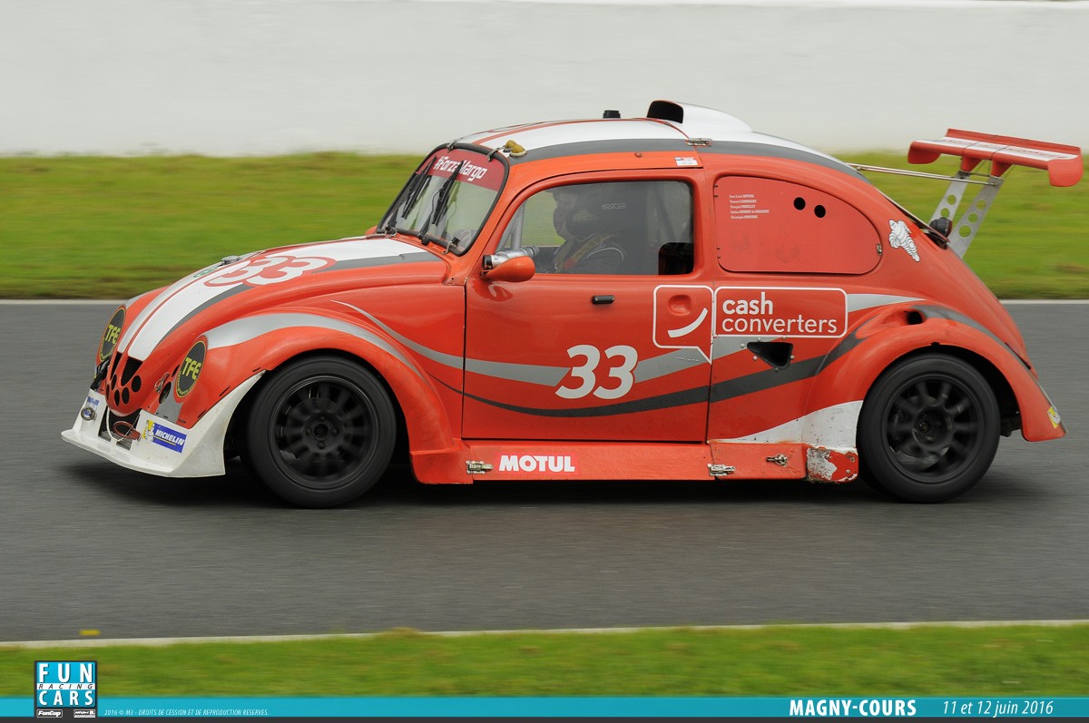 - La VW Fun Cup réservée aux voitures, conforme au règlement technique et sportif de la VW Fun Cup. La formule utilise un châssis tubulaire recouvert d’une carrosserie en fibre de verre. Un capot avant, une cellule centrale et un capot arrière compose la voiture. Un moteur 4 cylindres installés longitudinalement en position centrale devra être_installé. La voiture doit se conformer aux données en annexe 1. Cela s’applique pour les moteurs « Essence Evo 1 ». Elle doit aussi se conformer aux données reprises en annexe 2 pour les moteurs diesel. Enfin, elle doit se conformer en annexe 3 pour les moteurs « Essence Evo 3 ».