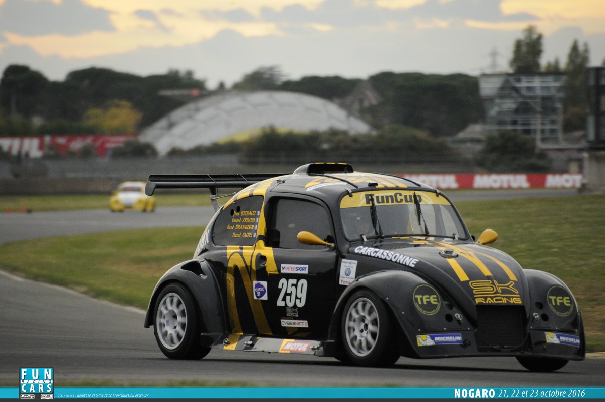 C’est essentiellement une véritable voiture de course. En effet un châssis tubulaire, moteur central arrière, 170 chevaux pour 820 kilos. La VW Fun Cup est un concept de compétition automobile internationale qui rencontre un succès sans précédent. En 2009, on a vu plus de 60 voitures au départ de chaque manche du championnat de Belgique! et 151 voitures aux 24 Heures de Spa-Francorchamps !
